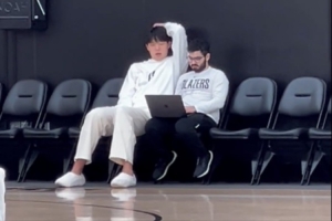 王猛配文写道:“一段视频证明杨瀚森的英语水平进步速度。这是今天训练之后杨瀚森和助理教练在场边一起看录像的镜头。翻译一直不在,大概持续了七八分钟,我这只截取了一小段。全程靠自己,有说有笑,乐乐呵呵。”