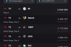 2-T1对阵GEN:221万。