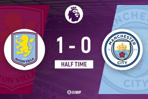 半场-曼城暂0-1维拉 哈兰德失单刀卡什破门布恩迪亚伤退