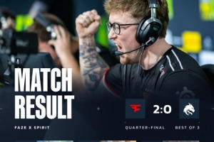 易边再战,手枪局zweih格洛克下K1四杀,次回合donk双杀,Spirit扳平比分后,donk三杀到手反超比分。第16回合sh1ro下包后残局1v2,玻璃房大狙直架包点空枪被FaZe扳平比分。双方比分一路来到9-9平,第19局大表哥三杀,donk次回合英雄AK手撕broky大狙,但寒王三杀让FaZe拿到第11分,总监与雨神各取双杀,FaZe拿到赛点。最终donk沙鹰三杀燃尽难C,寒王四杀还以颜色,FaZe以13-9拿下图一。