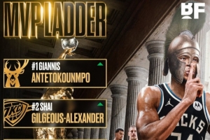 美媒BF排MVP:字母哥居首 亚历山大2 约基奇3 东契奇4 文班亚马5