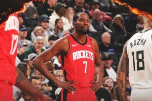 15中11砍31分7助!火箭赢球海报:杜兰特叉腰登上封面