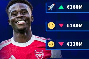 德转给出了萨卡身价变动的四个可能选项,分别是1.6亿欧、1.4亿欧、1.3亿欧和1.2亿欧。目前24岁的萨卡德转身价为1.5亿欧元,这也意味着本次萨卡的身价一定会迎来变化。