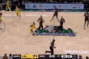 关键!兰德尔强突拉拉维亚打进被吹进攻犯规 森林狼挑战成功变2+1