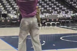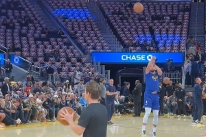 老粉已经慌了?库里赛前热身 中圈三分出手一发入魂