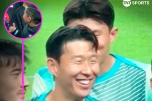 可爱对阵巴拉圭合影环节,孙兴慜与SONNY发型的小球迷打招呼