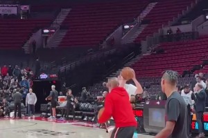 库里赛前热身连中三分远投,这手感真是没谁了!