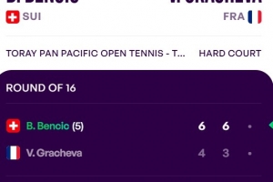 东京网球公开赛第二轮,5号种子本西奇耗时1小时25分钟以6-4 6-3击败资格赛选手格拉切娃,晋级八强将战8号种子穆霍娃。
