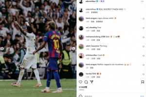 维尼修斯社媒晒庆祝照:主场度过美好的周日,皇马加油!