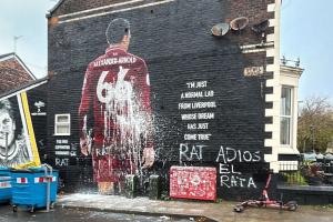 记者晒视频:工作人员正清理阿诺德遭到污损的壁画