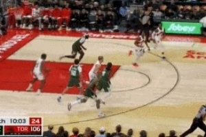 想啥呢!奎克利拿到篮板跳起没出球走步违例