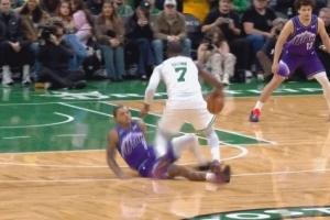 这不是犯规?基昂特-乔治滑倒铲翻杰伦-布朗 裁判没有吹罚
