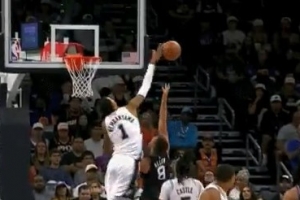遮天蔽日!格雷森-阿伦强攻上篮 文班亚马大帽扇出界外