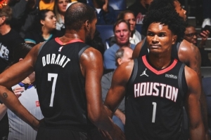 合砍39分14板12助3断!火箭官方赢球海报封面人物:杜兰特+阿门