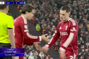 利物浦再做调整,维尔茨、罗伯逊被换下,凯尔凯兹、基耶萨登场